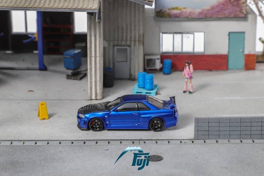 Fuji 1:64 Diecast Nissan Skyline GT-R R34 Z-Tune Bayside Blue Carbon Bonnet